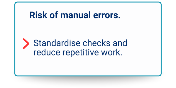 Eliminate manual errors with standardised checks