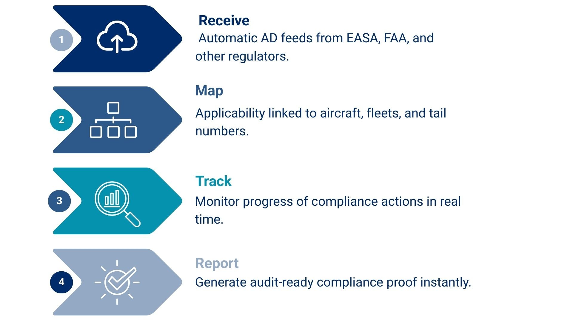 Real-time updates, mapped applicability, and instant compliance tracking, so you never miss an AD