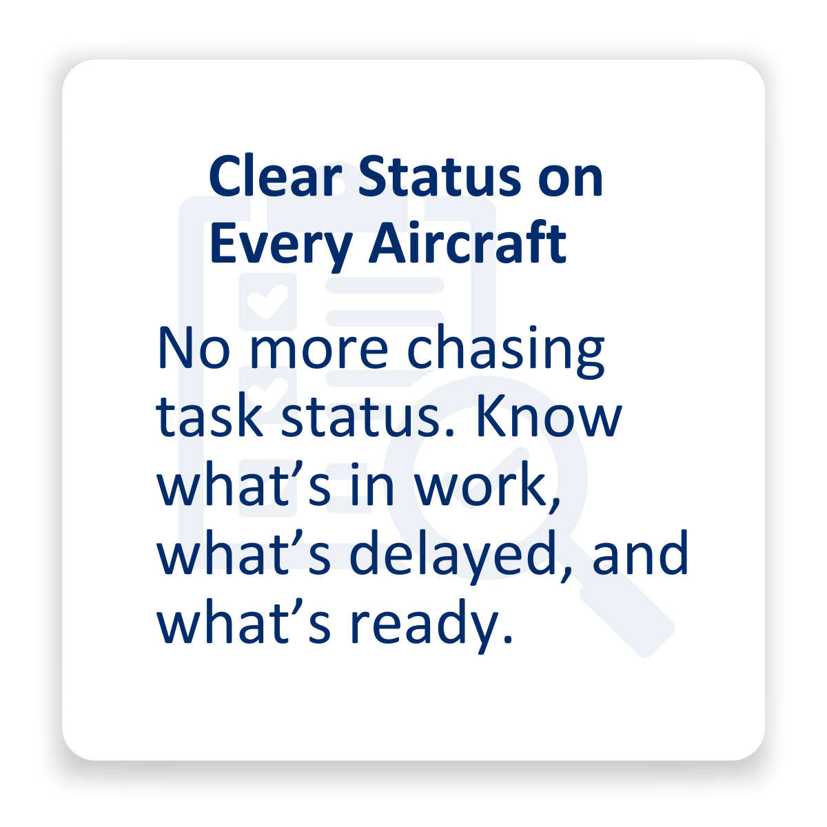 Get a real-time overview of aircraft availability, active workorders, and current AOG status — all in one screen.